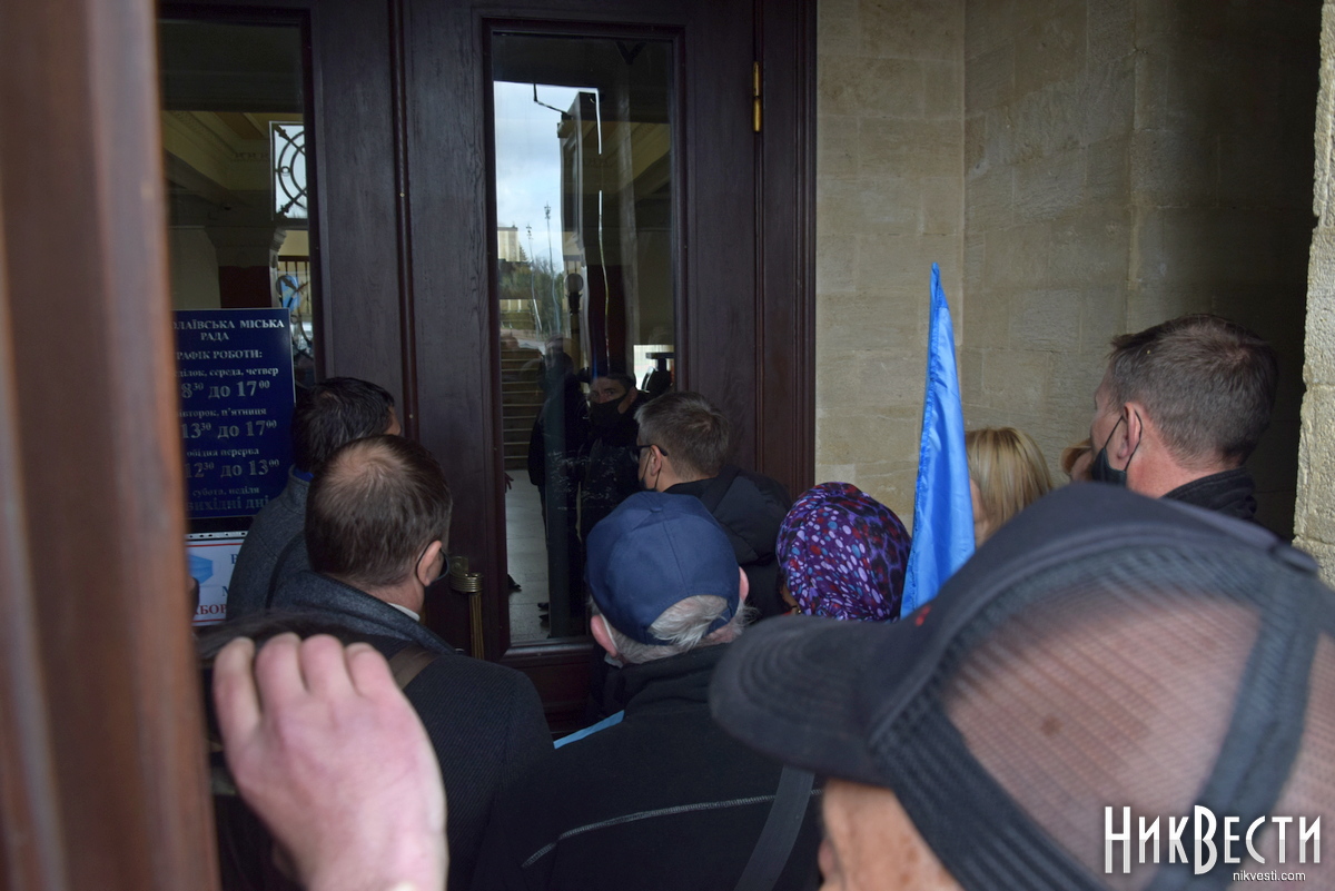 «300 николаевцев» заявили, что не имеют отношения к сломанным воротам и дверям в мэрию Николаева во время их митинга
