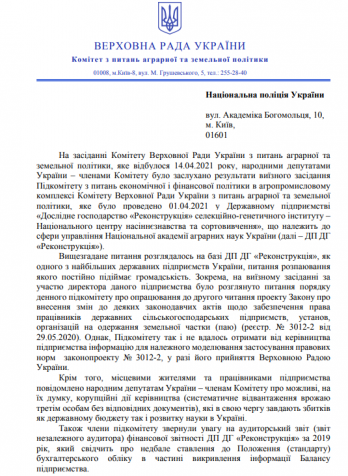 По этим фактам аграрный комитет ВР также обратился в Национальную полицию для проведения соответствующего расследования.