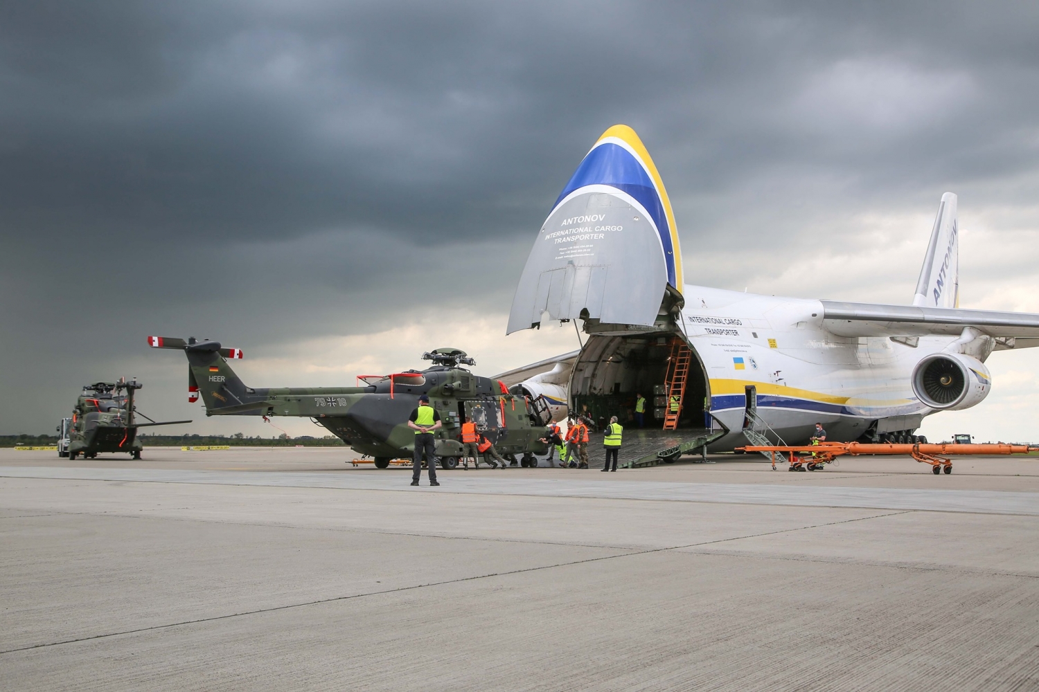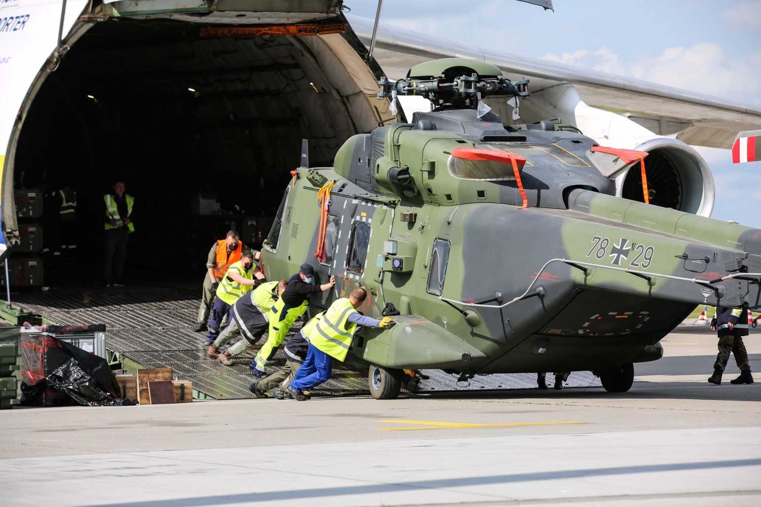 Украинские «транспортники» АН-124 вернули домой два NH90 Бундесвера. Две боевые машины весили около 18 тонн, их выгрузили и подготовили для транспортировки в Европу.
