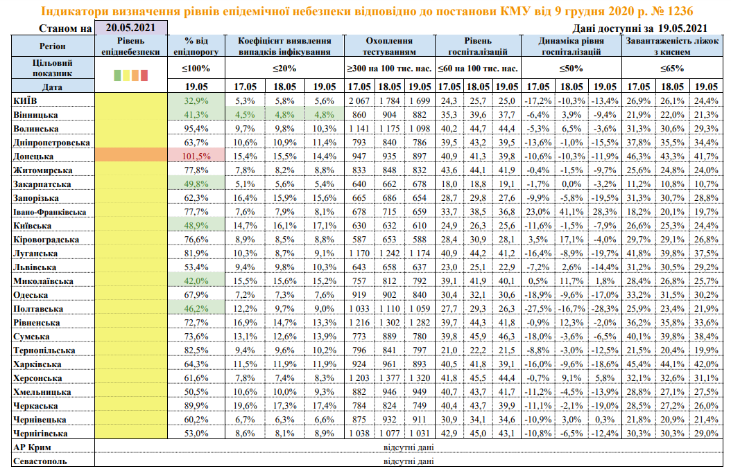 Министерство здравоохранения обновило показатели регионов по коронавирусу. Лишь в одном регионе превышен показатель по COVID-19. При этом Николаевская область соответствует «зеленой» зоне по проценту от эпидемического порога.