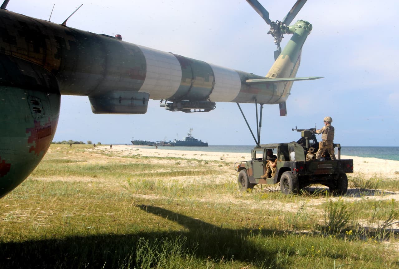 К следующему тактическому эпизоду учений присоединялась бомбоштурмовая авиация Воздушных сил, а также вертолеты огневой поддержки морской авиации. При привлечении корабельно-катерного состава корабельной десантной группы и боевых расчетов морской пехоты, которая выполняла боевые упражнения по коллективному оружию, украинские военные отработали тактический эпизод огневой поддержки войск, действующих на приморском направлении.