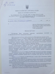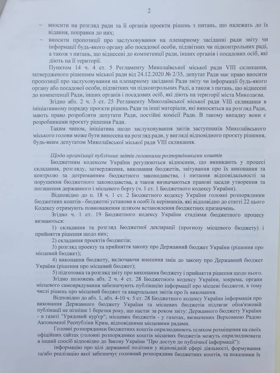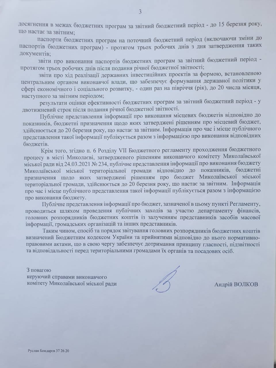 Татьяна Домбровская опубликовала ответ управделами исполкома Николаевского городского совета Андрея Волкова на ее обращение по поводу организации отчета вице-мэров.