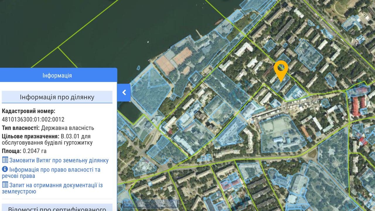 Управлению СБУ планируют передать в постоянное пользование участок госсобственности площадью 2047 м2 по улице Террасной, 9. На данный момент, согласно публичной кадастровой карте, данный участок предназначен для строительства общежитий.