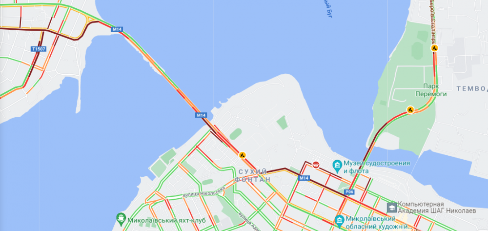 — Только что открыли движение. Первые авто уже заходят. На данный момент будет один въезд в Николаев и один выезд. Также можно заезжать из-под моста на Варваровский мост. Движение восстановлено, надеюсь, что в течение часа пробки исчезнут, — отметил Виталий Данила.
