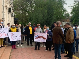 - Сегодня, 16 июля, под стенами Апелляционного суда Николаевской области собрались работники Николаевского глиноземного завода, пострадавшие от деятельности предприятия и активисты, которые следили за развитием дела от самого начала. С разных сторон звучат лозунги: «Завод наш» и «Дерипаску геть».