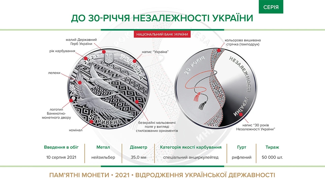 К 30-летию независимости Украины Нацбанк вводит в обращение памятную монету