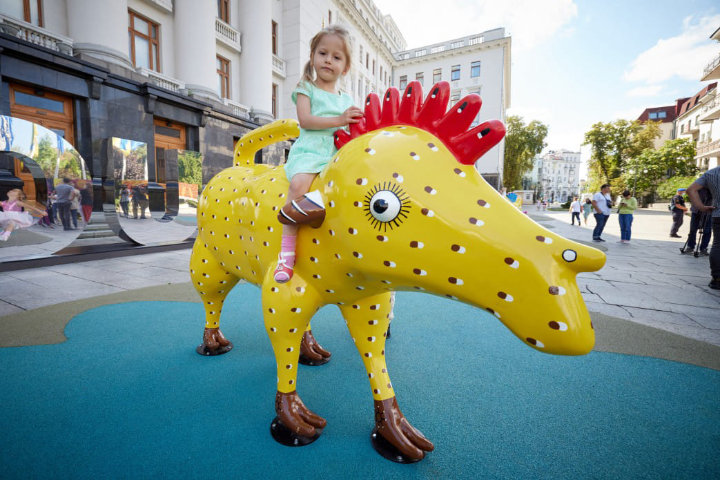 В Киеве возле здания Офиса президента открылось для посетителей игровое арт-пространство, объекты которого созданы по мотивам работ известной украинской художницы Марии Примаченко.