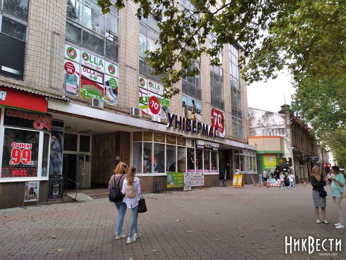 Напомним, что в Николаеве на фасаде здания «Детского мира» по улице Соборной в пятницу, 20 августа, снова появилась огромная рекламная вывеска магазина обуви — в этот раз ее приклеили на окна, сразу за вывеской «Универмаг». Ранее её демонтировали сотрудники «антикоррупционного» департамента мэрии Николаева.