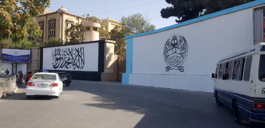 Кроме того, стены вокруг посольства США в Кабуле, расположенного на главной улице города, ведущей к кабульскому международному аэропорту имени Хамида Карзая, сначала были окрашены в белый цвет, а затем украшены надписями и лозунгами «Талибана».