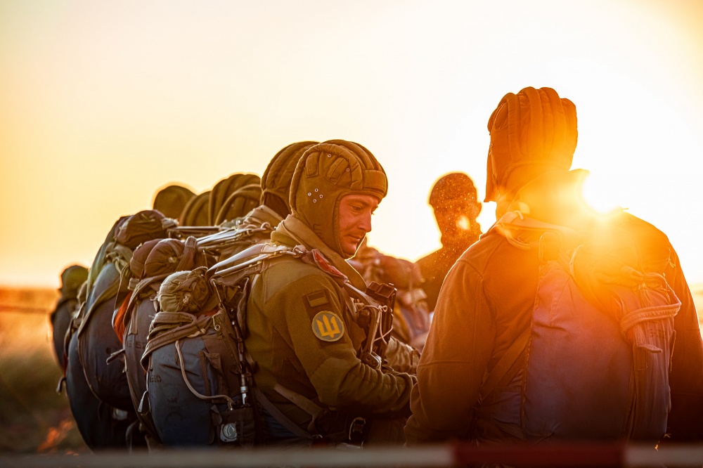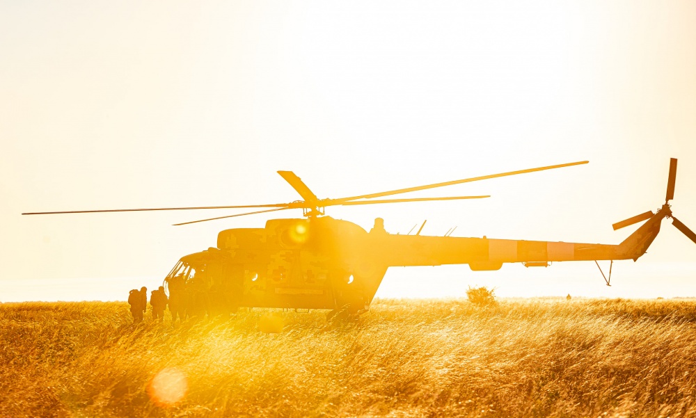 Десантирование осуществляли с вертолета Ми-8 Морской авиации Военно-Морских Сил ВС Украины с высоты 600 и 800 метров с оружием и снаряжением.