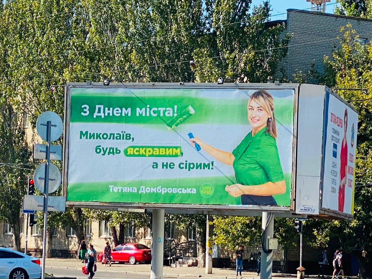 Накануне празднования 232-й годовщины со дня основания Николаева в городе появились билборды с поздравлением от главы фракции «Слуга народа» в горсовете Татьяны Домбровской.