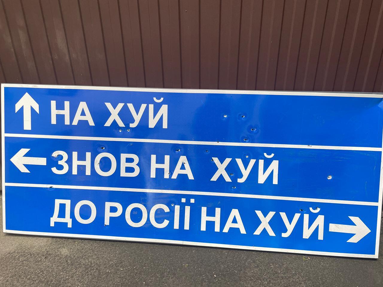 20:15 «Укравтодор» выставил на аукцион дорожный указатель с направлениями «Нах*й, опять нах*й и в Россию нах*й». Лот появился в системе Prozorro.продажи.
