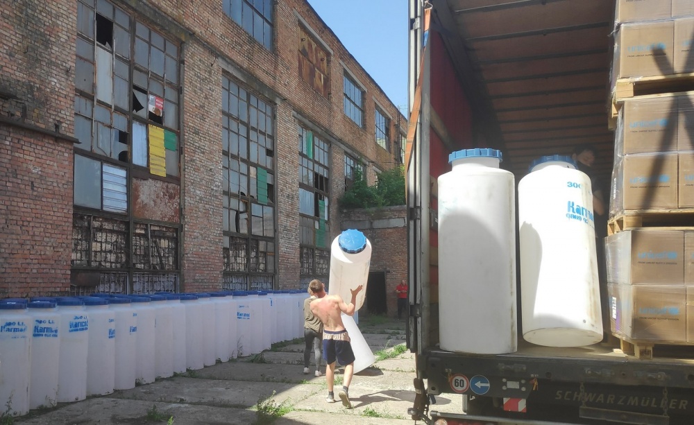 На этот раз в Николаевскую область поступили емкости для воды на 300 литров, специальные санитарные наборы по уходу за больными, а также печенье для детей.