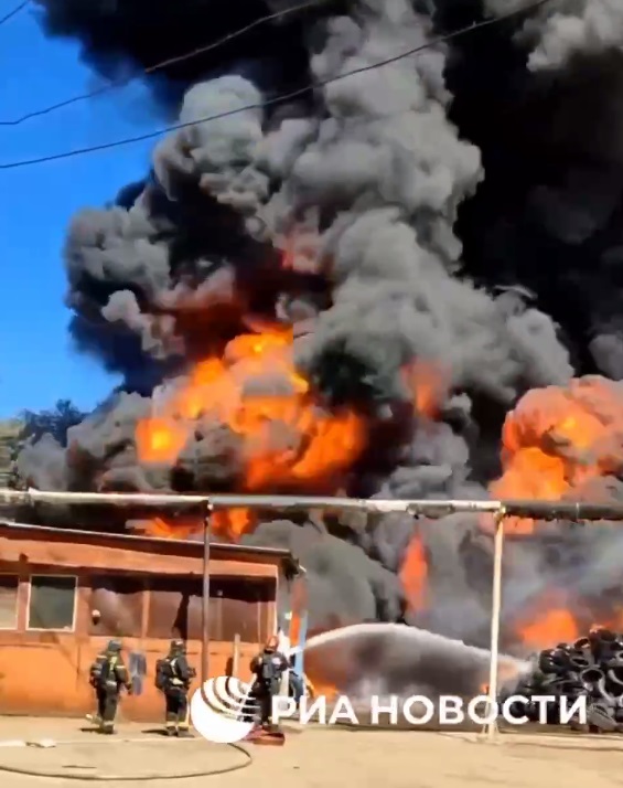 12:13 В Москве крупный пожар на Каширском шоссе, горит склад с шинами. На данный момент площадь возгорания составляет 1000 квадратных метров. Канал «Жаба и гадюка» со ссылкой на источник утверждает, что причина пожара — поджог.