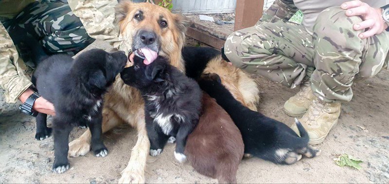 Уже под Николаевом выяснилось, что собака была беременна. Недавно она ощенилась — подразделение предлагает всем желающим забрать маленьких песиков, которых можно считать киевлянами.