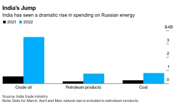13:46 Экспорт российских энергоносителей в Индию и Китай после масштабного вторжения РФ в Украину принес Кремлю 24 миллиарда долларов в течение всего трех месяцев, пишет Bloomberg, ссылаясь на таможенную документацию.