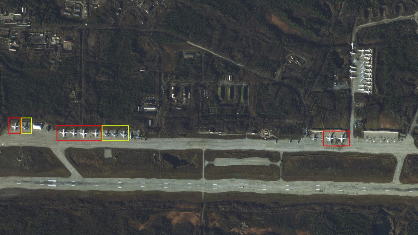 На знімках 7 жовтня видно, що на базі Олєнья розташовані сім бомбардувальників Ту-160 і чотири – Ту-95. Через два дні Planet Labs зафіксував ще один Ту-160, який стоїть на злітній смузі авіабази.