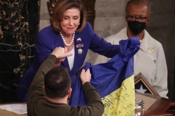 — Вони (українські військові, – прим.) просили привезти цей прапор до вас, членів Палати представників та сенаторів. Тих, чиї рішення можуть врятувати мільйони людей. Нехай ці рішення будуть ухвалені, хай цей прапор буде з вами, леді та джентемельни. Цей прапор є символом нашої перемоги у цій війні, – сказав Володимир Зеленський.