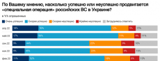 З лютого цього року практично не змінилася частка респондентів, які вважають, що війна йде успішно: узимку так вважали 63%, у травні - 61%. При цьому дещо побільшало опитаних, які вважають, що війна йде неуспішно - таких 28% (у лютому - 24%).