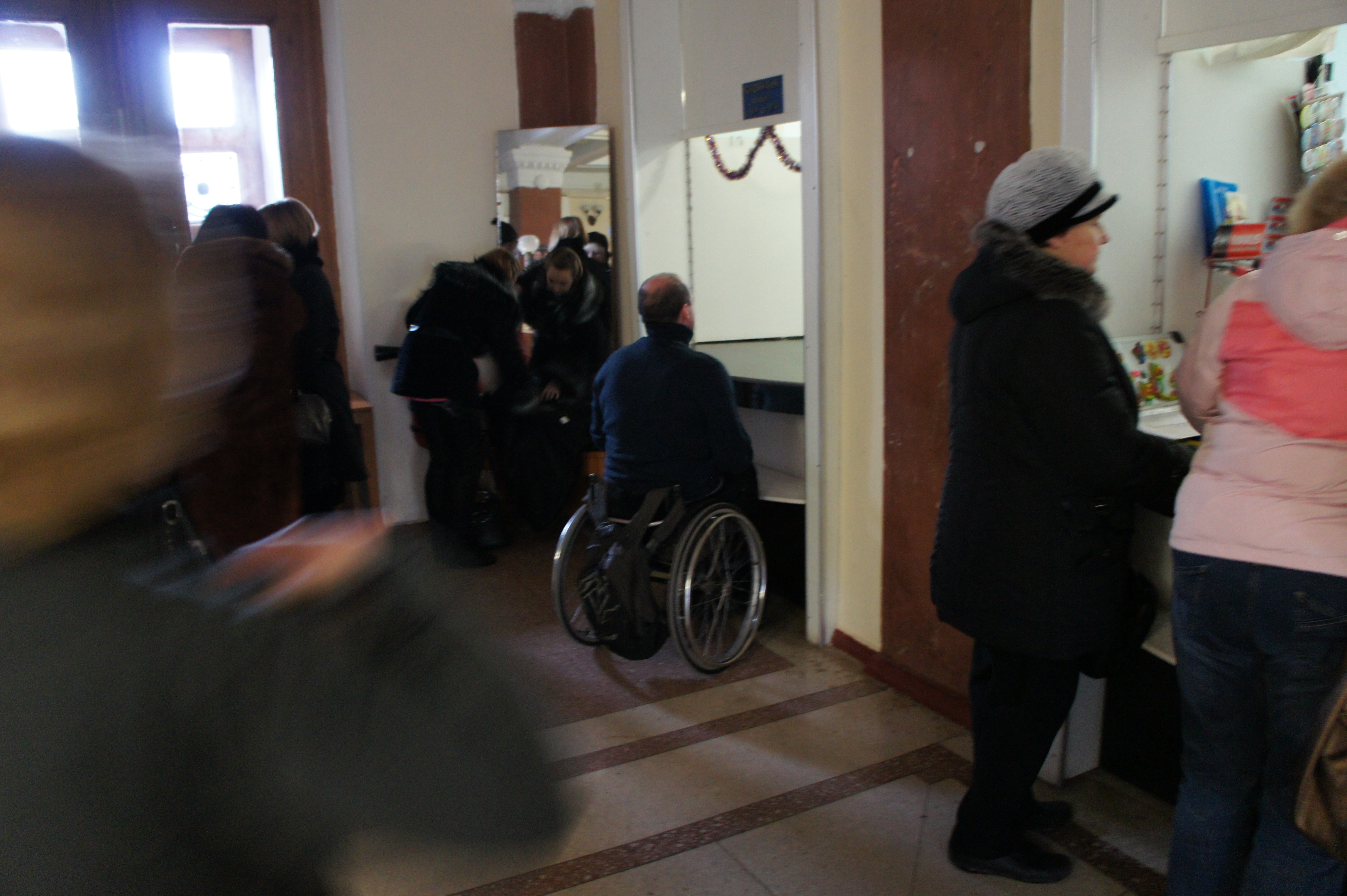 - Я инвалид колясочник, в коляске уже 30 лет, - рассказывает Валерий Головин. – Много лет наши все здания не были приспособлены, то есть инвалидов у нас не было и все строилось без расчета на людей в колясках. А теперь мы пытаемся быстро-быстро это все дело переделать. Это невозможно… Пока у нас получается не так как надо, а так как получается, к сожалению.