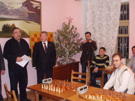 Городской голова на открытие немного опоздал, но на рассадку за столики успел. Присел он, как и полагается по должности, за первый стол. В соперники по жеребьевке ему достался представитель полиграфического предприятия «Шамрай» Сергей Кротчик. Играли они практически все отведенное время. Победу и одно заслуженное очко завоевал мэр.