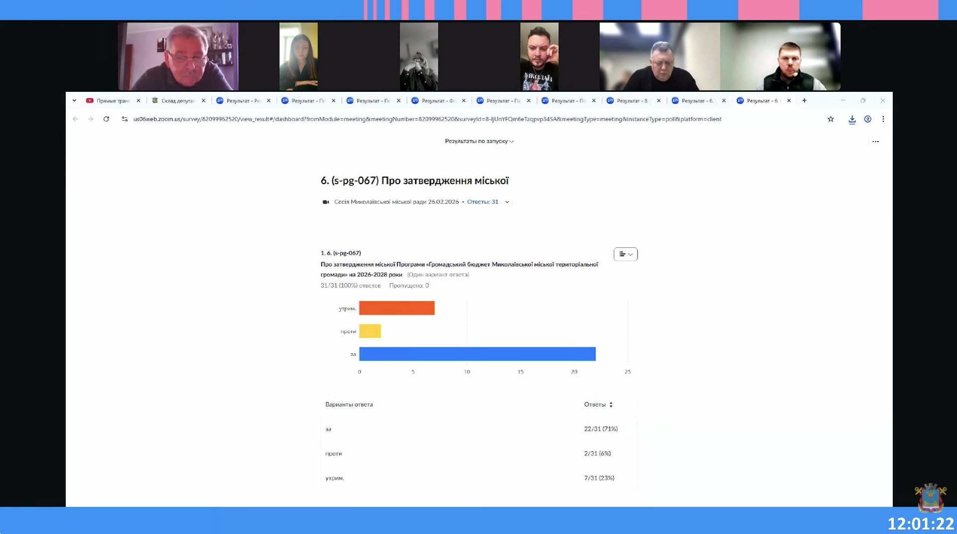Отже, «за» проголосували 22 депутати, «проти» — 2, «утрималися» — 7 із 31 присутнього. Рішення не прийнято.