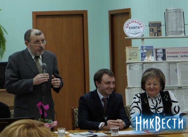 Презентация новой книги профессора, заведующего кафедрой славянской филологии ННУ им. В. О. Сухомлинского Владимира Гладышева «Город «на стыке моря и лимана» и Мир» состоялась сегодня, 1 марта, в научно-педагогической библиотеке Николаева.