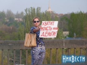 Акция проходила на Ингульском мосту, где протестующие стали по обе стороны дороги и развернули плакаты следующего содержания: «Тут был асфальт», «Покращення застряло в ямах Николаева», «Власть плюет на нас», «Здесь Круглов не ездит», «Не дороги, а печалька», «Почините нам дороги», «Савченко, вали в Донецк» (Геннадий Савченко, начальник службы автодорог в Николаевской области, - прим. НикВести), «Хватит красть наши деньги», «Чиновники, трудитесь для народа», а также «Гайдаржи, давай до свидания!» (Валентин Гайдаржи, директор департамента ЖКХ Николаевского горсовета, - прим. НикВести).