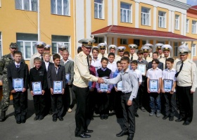 Руководители военных учреждений, дислоцирующихся на территории города, поздравили первых двадцать воспитанников, которые заинтересовались знаниями флотского дела и неравнодушны к истории и традициям отечественного флота.