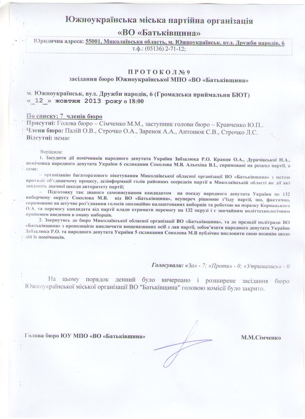 Сегодня, 15 октября, началась массовая рассылка «писем счастья» по адресной базе членов партии «Батьківщина» в Николаевской области, в которых «мелкие жулики» Олег Кравец и Наталья Дурачевская, некогда имевшие отношение к партии ВО «Батьківщина» рассказывают о «рейдерском захвате партии», продолжая реализацию сценария по обеспечению участия Михаила Соколова на выборах на 132 округе в качестве самовыдвиженца.