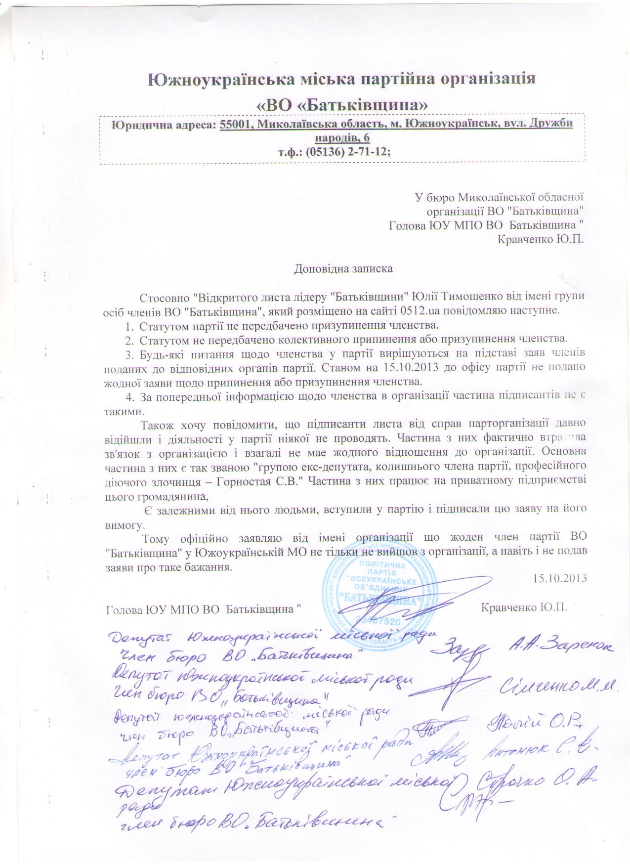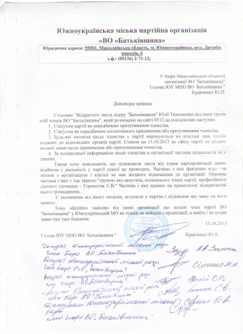 Андрей Стулин, посвятивший более семи лет жизни партии Юлии Тимошенко в Южноукраинске, с полной ответственностью заявил, что часть людей, подписавших пресловутое «письмо к Тимошенко», -- никогда не имели никакого отношения к «Батькивщине», а часть соприкасалась с ней лишь эпизодически, причем много лет назад.