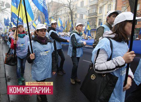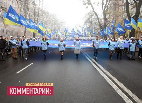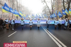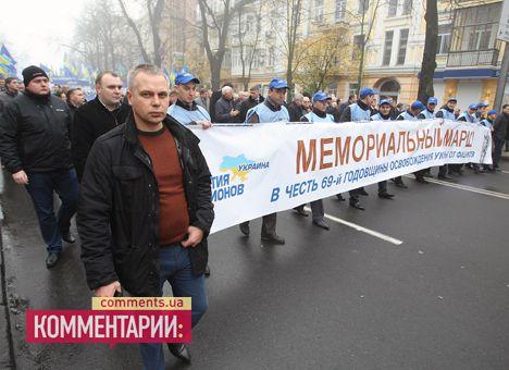 Участники марша разделились на два "лагеря" – молодые люди и студенты и люди пожилого возраста. Последние заявляют, что пришли на марш "за идею", причем одни – за идею Партии регионов, а другие – почтить память погибших.