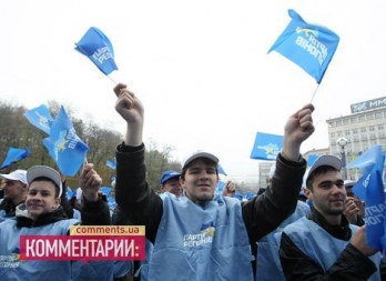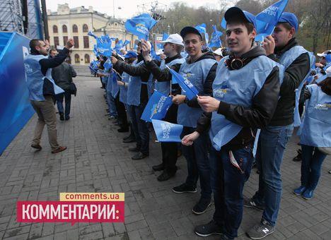 Со стороны Мариинского парка люди сходились к месту концерта организованными колоннами – отдельной от каждой области. По словам самих митингующих, в Киев их привезли на партийных автобусах.