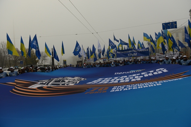 Как сообщили в пресс-службе Партии регионов, которая выступила организатором марша, акция стартовала на площади Славы, где участники возложили цветы к памятнику Вечной Славы на могиле Неизвестного солдата.