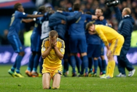 После этого игра украинцев окончательно расклеилась и через десять минут Бензема довел преимущество хозяев поля до двух мячей.