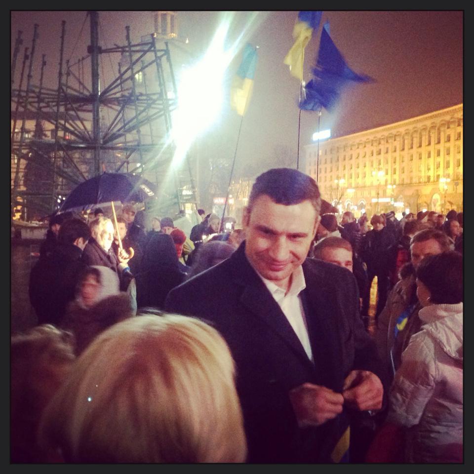 Виталий Кличко сейчас выступает на Майдане. Выражает слова поддержки собравшимся: "Я хочу поблагодарить... #євромайдан