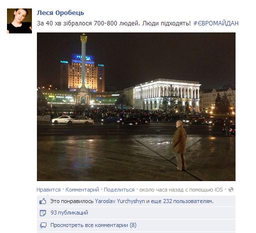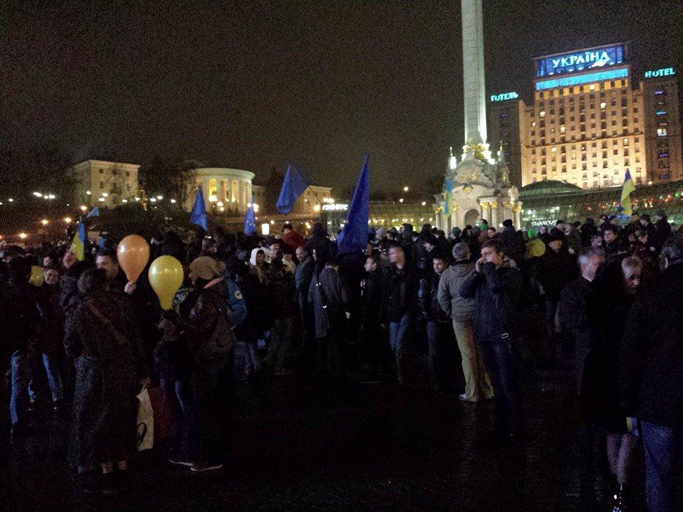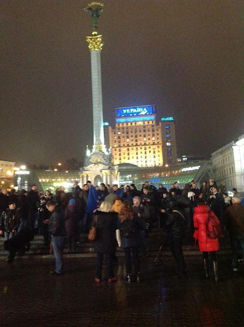 Сообщается, что на Майдане собралось уже несколько сотен человек и количество собравшихся увеличивается. Также сообщается, что на Майдан приехали народные депутаты от оппозиции.