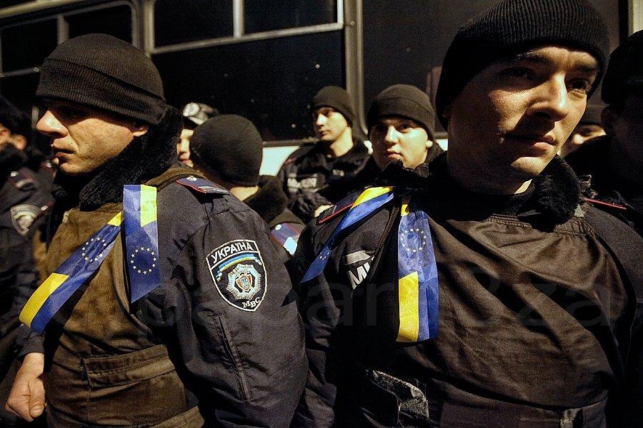 00.31 К Майдану Независимости, где сейчас проходит митинг против остановки процесса евроинтеграции Украины, стянули "Беркут". Весь переход под Майданом забит силовиками