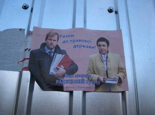 Наблюдатели Гражданской сети ОПОРА зафиксировали факт нарушения Закона Украины «О выборах народных депутатов Украины», который заключается в распространении листовок-анонимов. Так, кандидат Руслан Радецкий пиарится за счет жертвы «врадиевских милиционеров-насильников» Ирины Крашковой.
