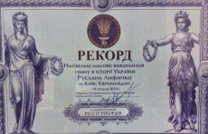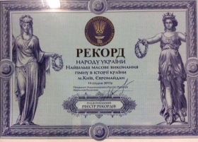 Народ Украины во главе с певицей Русланой Лыжичко установил рекорд по наиболее массовому исполнению государственного гимна на Евромайдане.