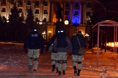 Но уже через 5 минут в здание ОГА провели несколько бойцов спецподразделения милиции "Беркут" со щитами, а также служащих внутренних войск.
