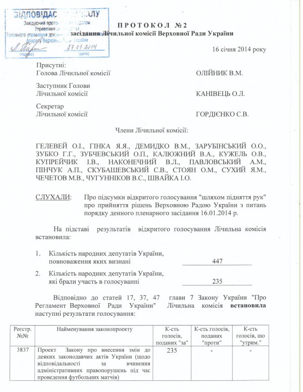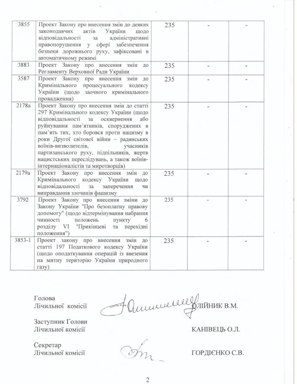 — Из полученных мной материалов сейчас установлено, что счетная комиссия во главе с Олейником сфальсифицировала свой протокол №2, в котором фигурирует цифра 235 депутатов, которые якобы проголосовали руками "за", - пишет Андрей Пышный.