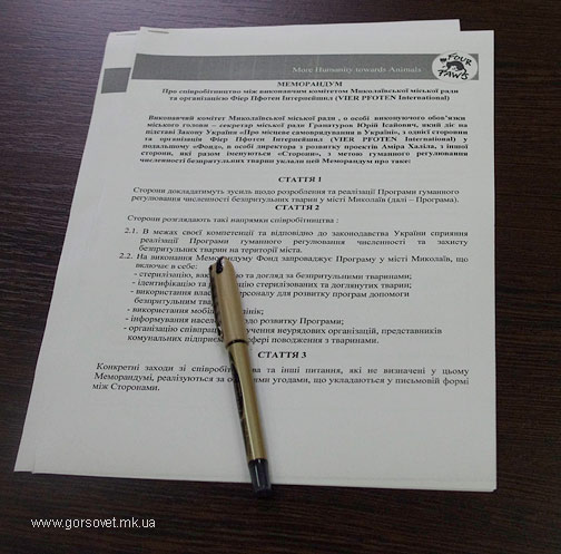 После подписания документов секретарь городского совета Юрий Гранатуров сообщил, что в ближайшее время также запланирован приезд директора проекта по защите бездомных животных в Украине, доктора Амира Халила, с которым будут обсуждаться дальнейшие детали сотрудничества.