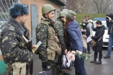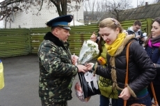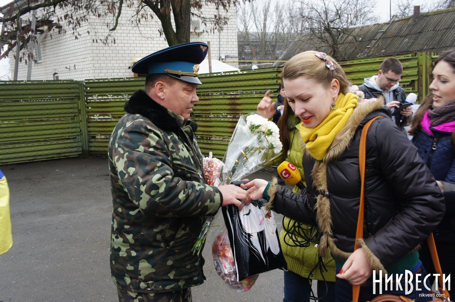 Кроме общения с начальником штаба тактической авиации, активисты Майдана угостили конфетами военнослужащих, вручили им открытки, цветы и спели Гимн Украины.