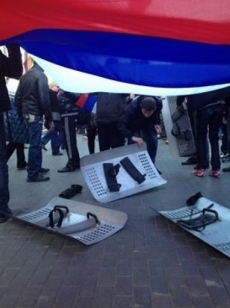 В Харькове штурмовали ОГАОколо 21:00 около тысячи активистов с флагами России и георгиевскими лентами оттеснили правоохранителей и вошли в здание ХОГА.
