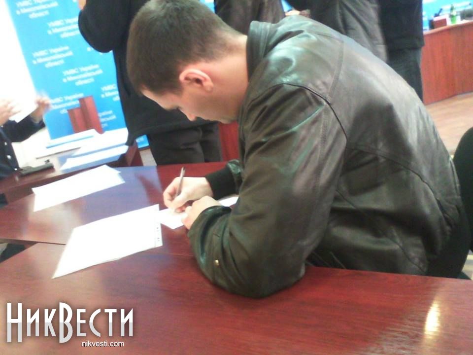 Активисты принесли Юрию Седневу заявления заместителей начальника областного управления ГАИ об отстранении от выполнения служебных обязанностей на время расследования законности увольнения Виктора Трофименко.