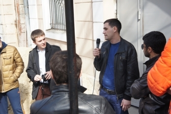 После этого Виктор Трофименко вышел к своей группе поддержки и рассказал о результатах проверки.