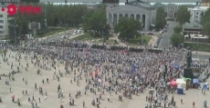 Люди идут, скандируя «Ахметов - враг народа» и «Россия».