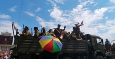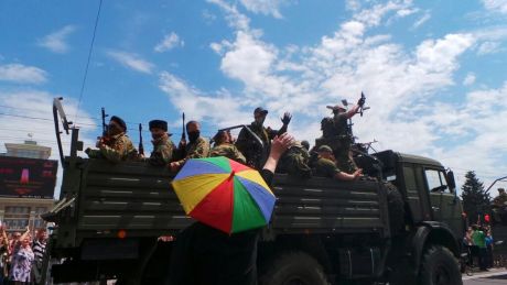 После этого бойцы батальона «Восток» погрузились в машины и уехали.