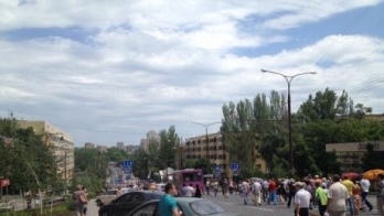 После этого участник митинга с площади Ленина в Донецке, перекрыв движение, двинулись вниз по проспекту Ильича.